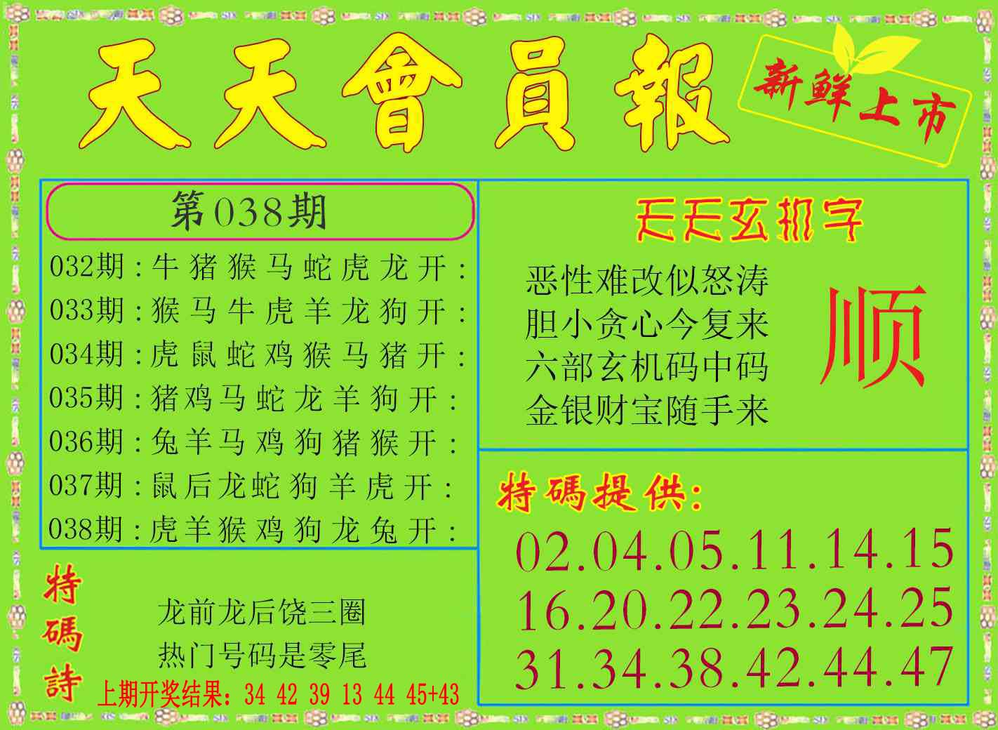 038期: 参赛帖🌭【福彩金星】🌭六肖公式 🌭跟到你就是赚到